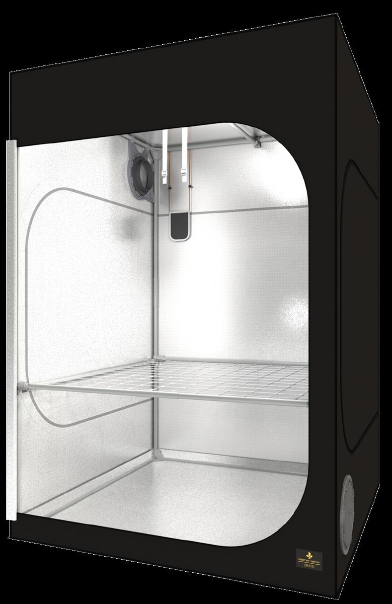 Dieser Darkroom DR150 bietet viel Platz für eine 1000W NDL, oder 960W LED Beleuchtung.Mit 150cm in der Breite und Tiefe ist er am oberen Ende der Empfehlungsskala für 600 Watt Systeme. Für 1000 Watt Beleuchtung ist die Growbox genau so gut geeignet und mit 2,17 Meter Höhe passen auch die am längsten blühenden Pflanzen oder mal ein etwas höheres Hydrosystem rein.
