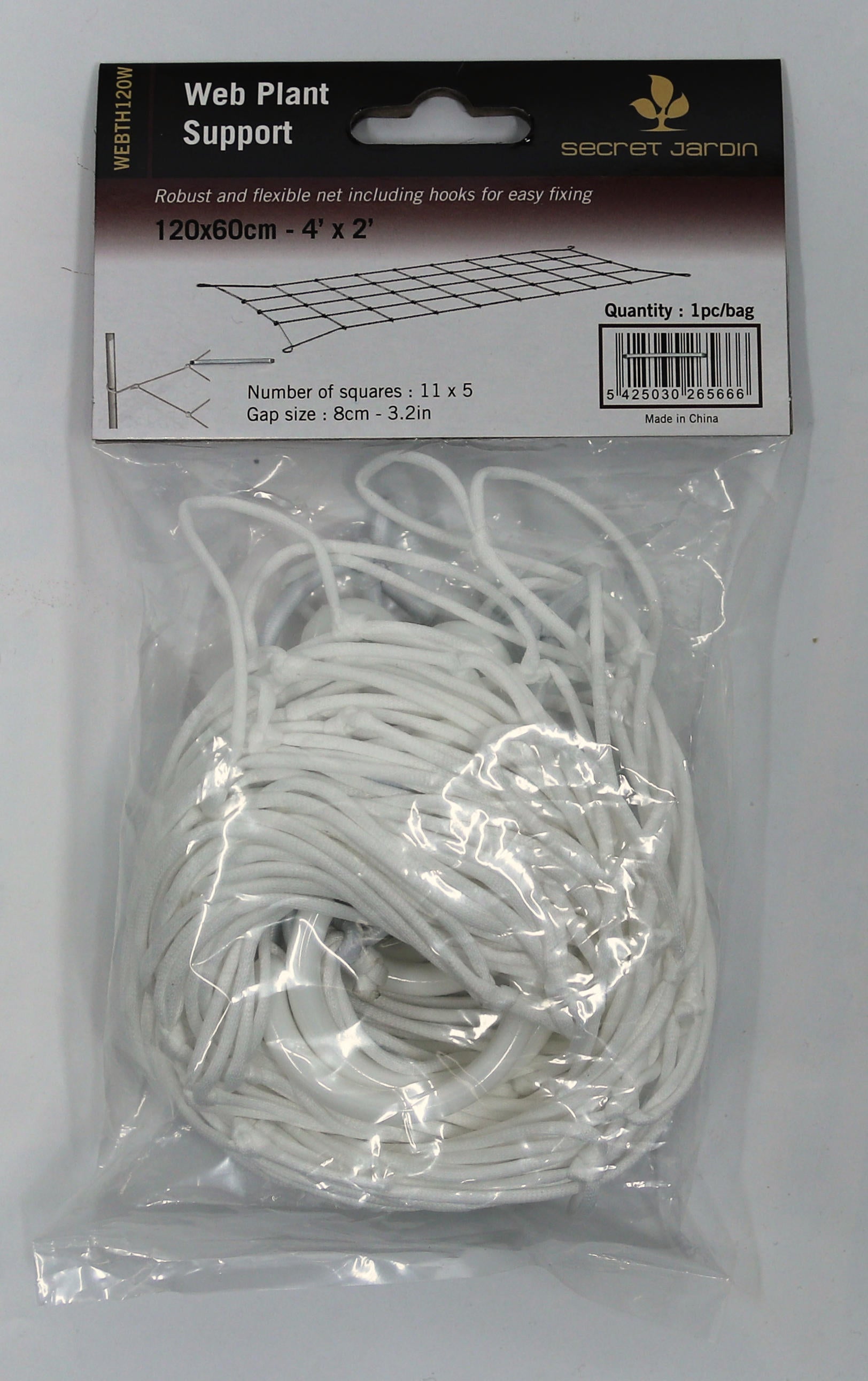 Pflanzenstütznetz passend für eine Fläche von 120 x 60 cm. Es wird mit Metallhaken an den Ecken befestigt und bietet Halt für wachsende Pflanzen, um sie vor dem Umfallen zu schützen. Aufgrund der flexiblen Struktur nur eingeschränkt für Scrogging geeignet. Die Gummibänder mit einem Durchmesser von 2 mm machen das Netz mehrfach verwendbar. Es verfügt über 11 x 5 Maschen mit einer Maschenweite von 8 cm.