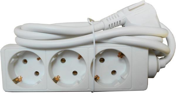 Stromverteiler mit drei Steckplätzen für Geräte bis 3680 Watt, geeignet für 250 Volt und 16 Ampere. Ausgestattet mit einem 1,5 Meter langen Kabel vom Typ H05VV-F 3G1,5. Gehäuse in lichtgrauer Farbe. Steckdosen sind im 45 Grad Winkel angeordnet und verfügen über eine integrierte Kindersicherung. Schutzart IP20 sowie Kennzeichnungen GS und CE.